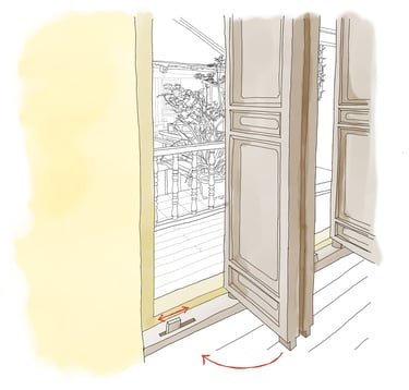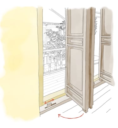 Traditional Upper-class homes featured many solid timber doors, as rooms often opened onto balconies encircling courtyards. Wooden thresholds were built to be stepped over, preventing evil spirits believed to travel along the floor from entering the home. These ornate, pivoting doors were held closed by sliding locks that sat in the raised cill.